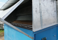 После процесса сушки зерно попадает в разгрузочный лоток. Далее оно транспортируется при помощи шнекового конвейера в норию и по ней попадает в склад временного хранения (бункер ЗАВА, силос, склад зерна).