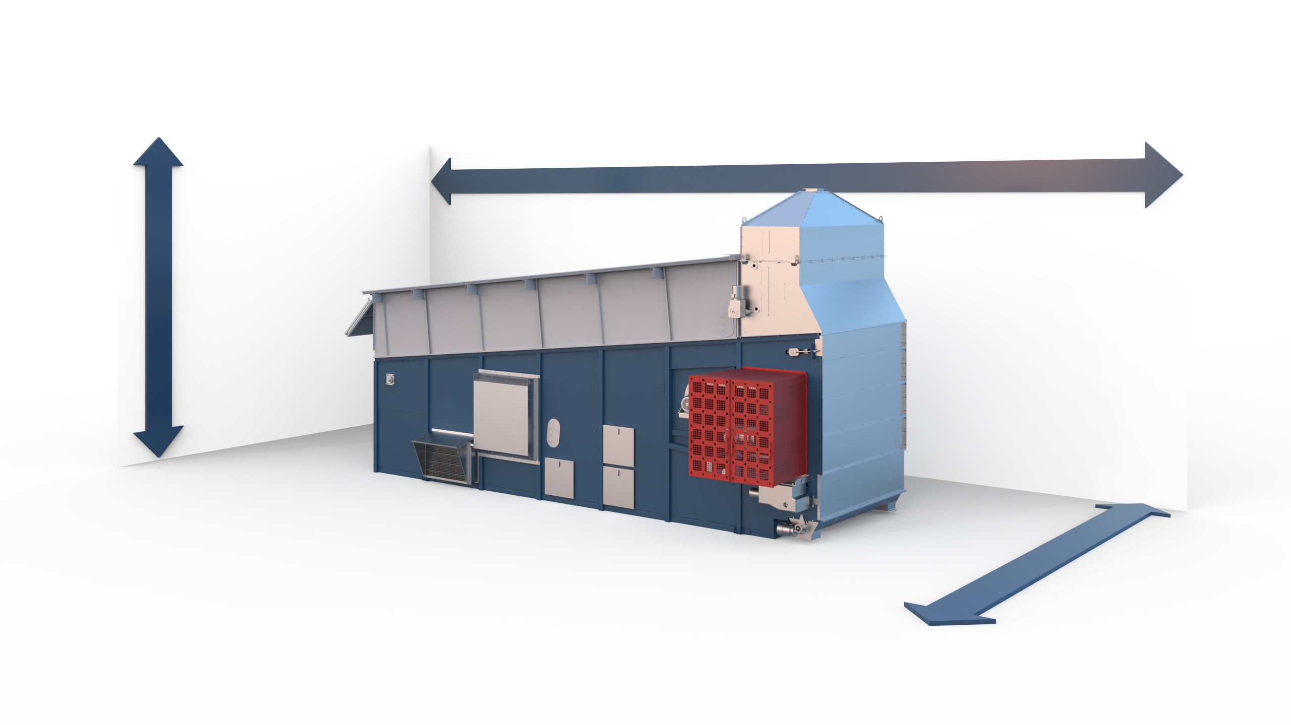В задней части устройства расположен большой люк с торца. При открытии крышки через него выходит тёплый воздух и мелкий летучий мусор. Когда происходит охлаждение, мусор остаётся внутри, а поток тёплого воздуха направляется в горячую камеру и затем в камеру сушки. Это позволяет значительно снизить расходы на нагрев воздуха.